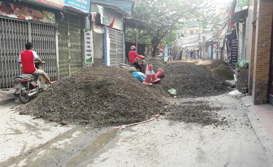 Phố Thịnh Liệt chìm trong những đống đất lớn.
